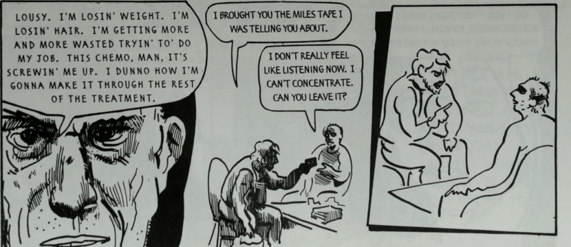 It’s not often that a comics panel will make me put a book down to catch my breath. Our Cancer Year, a 1994 comics memoir by Harvey Pekar, Joyce Brabner and Frank Stack, chronicles Pekar and Brabner’s lives as Pekar, a legend in the history of underground and independent comics, was being treated for lymphoma. The first panel hit me as hard as anything I’ve read.