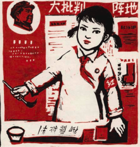 Duke’s observation about the militarization of children points to the Cultural Revolution’s darkest legacy: the experiences of children who witnessed terrible suffering and were called upon to commit horrific acts in the name of Mao Zedong Thought. A child during the Cultural Revolution, the writer Gao Zhiling was pulled out of school to dig trenches in preparation for a rumored Soviet attack, and recalls how, “when not doing hard labor, schoolchildren studied nothing but propaganda and spent their time screaming insults at teachers.” Beyond enduring forced labor and a perverted education, children in the Cultural Revolution often witnessed, or took part in, shocking acts of violence. Zhang Hongbin, now in his sixties, is haunted by the fact that he denounced his mother after she made disparaging comments about Mao. Zhang “called for her to be shot as a counter-revolutionary, [and] last saw her as she knelt on stage in the hours before her death.”