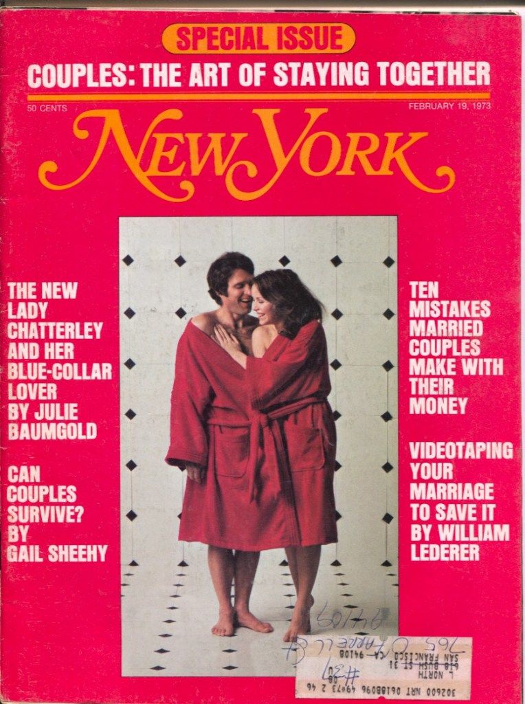 In February 1973,* New York magazine ran a special issue: “Couples: The Art of Staying Together.” Alongside “Videotaping Your Marriage to Make It Better” and Gail Sheehy’s “Can Couples Survive,” NY featured a piece credited to a certain 24-year-old “graduate student in art and architecture at Yale University,” better known to the reading public as the creator of Doonesbury.
